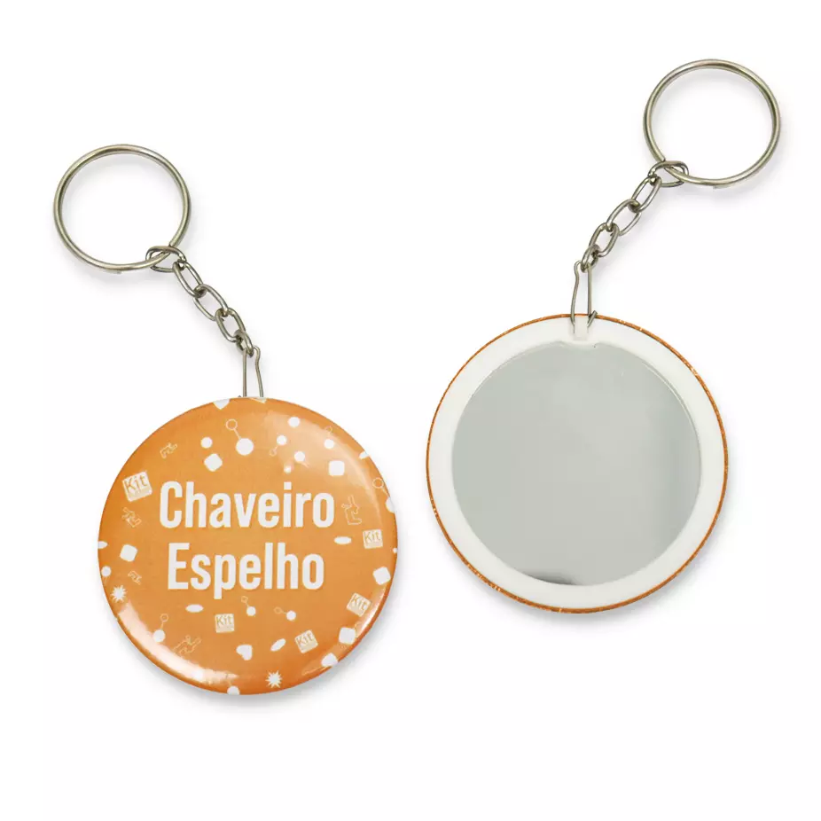 Botton chaveiro com espelho personalizado ideal para brindes promocionais.