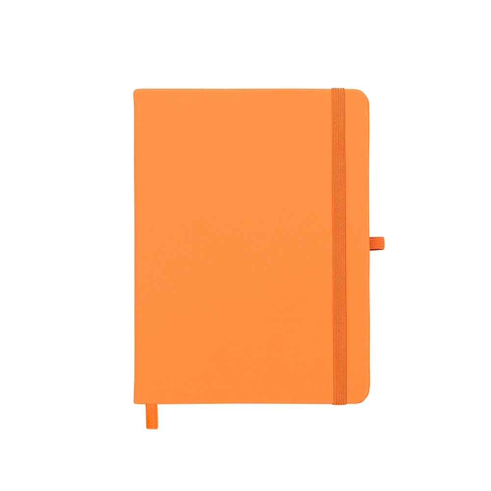 Ir para o conteúdoCaderneta emborrachada com porta caneta em nylon, marcador de página em cetim e fita elástica para lacre. Contém aproximadamente 80 folhas pardas sem pauta.