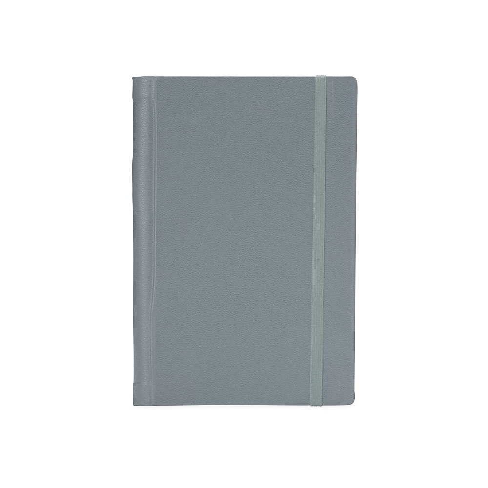 Caderneta emborrachada com wire-o, elástico para lacre e marcador de página em cetim. Possui páginas para dados pessoais, calendário de 2024 à 2026, página de contatos e aproximadamente 100 páginas em marfim com pauta.