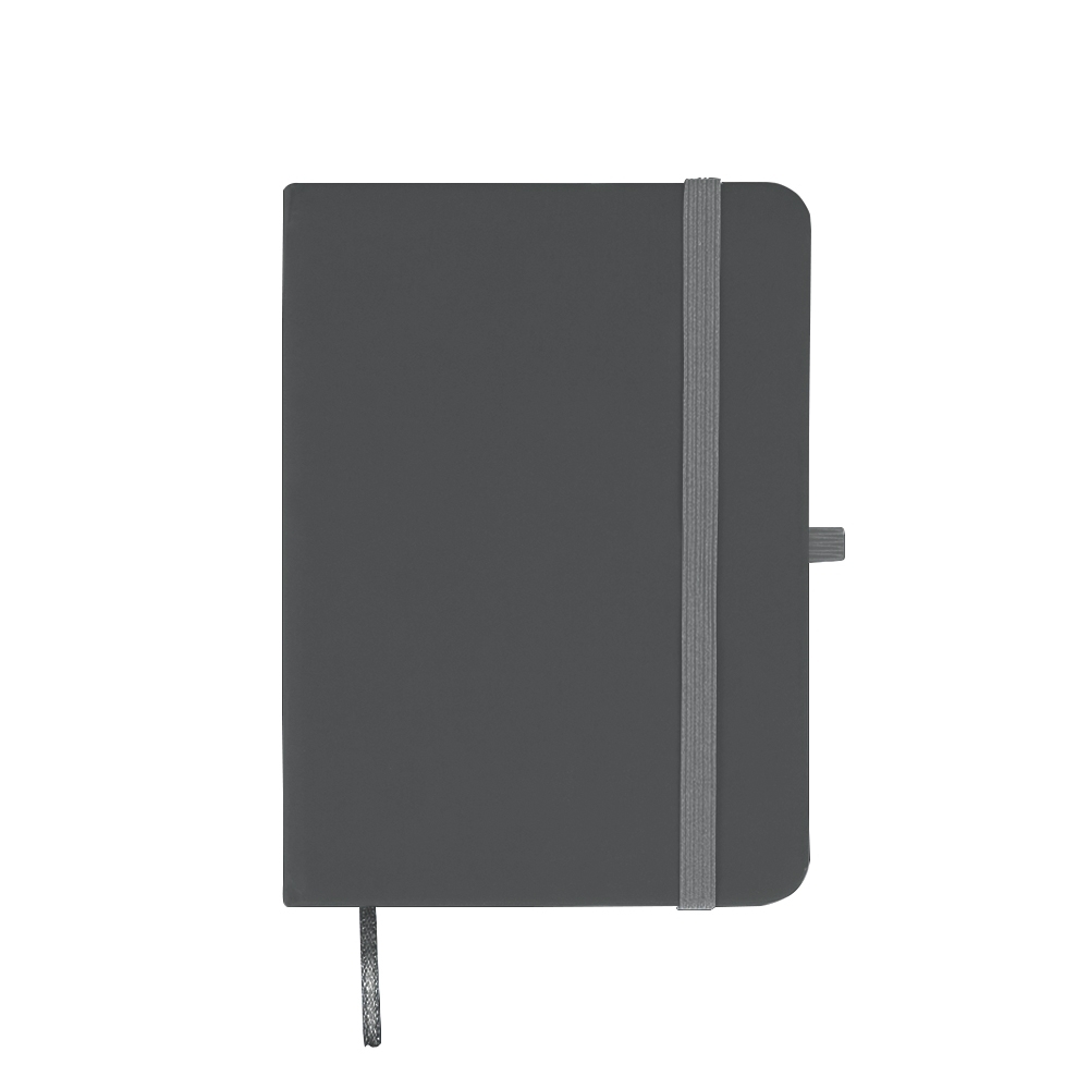 Ir para o conteúdoCaderneta emborrachada com elástico para lacre, marcador de página em cetim e porta caneta, contém aproximadamente 84 folhas marfim sem pauta.