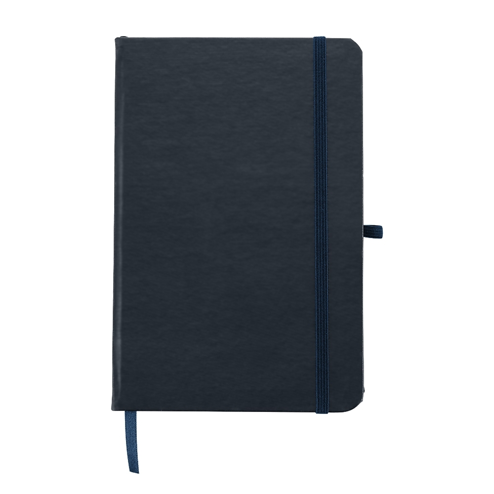 Ir para o conteúdoCaderneta percalux com marcador de página em cetim e suporte elástico para caneta (não acompanha). Contém aproximadamente 79 folhas pardas sem pauta.