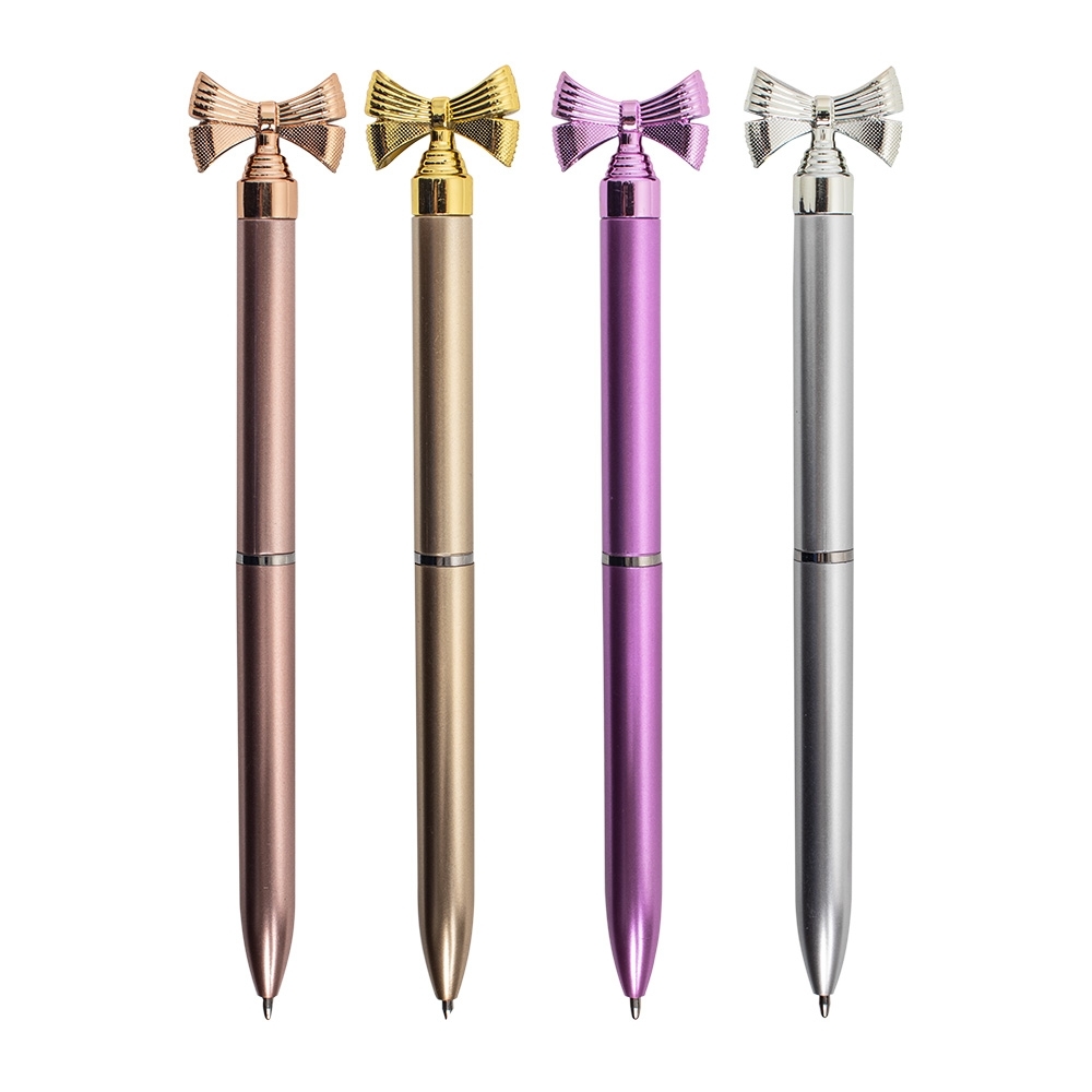 Esta caneta com decoração de lacinho é o presente perfeito para quem adora um toque de delicadeza. Feita de plástico, com acionamento por rotação e carga esferográfica azul de 1mm, ela oferece uma escrita precisa. Seu laço decorativo adiciona um charme especial, tornando a caneta ainda mais encantadora. OBS.: PEDIDOS COM CORES SORTIDAS