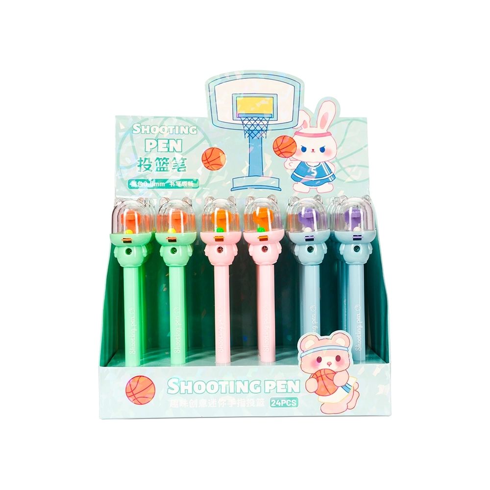 Caneta plástica mista com carga esferográfica preta de 0,5mm. Apresenta decoração no formato de basquete de dedo. Sua estrutura leve proporciona uma pegada suave para uma escrita precisa.