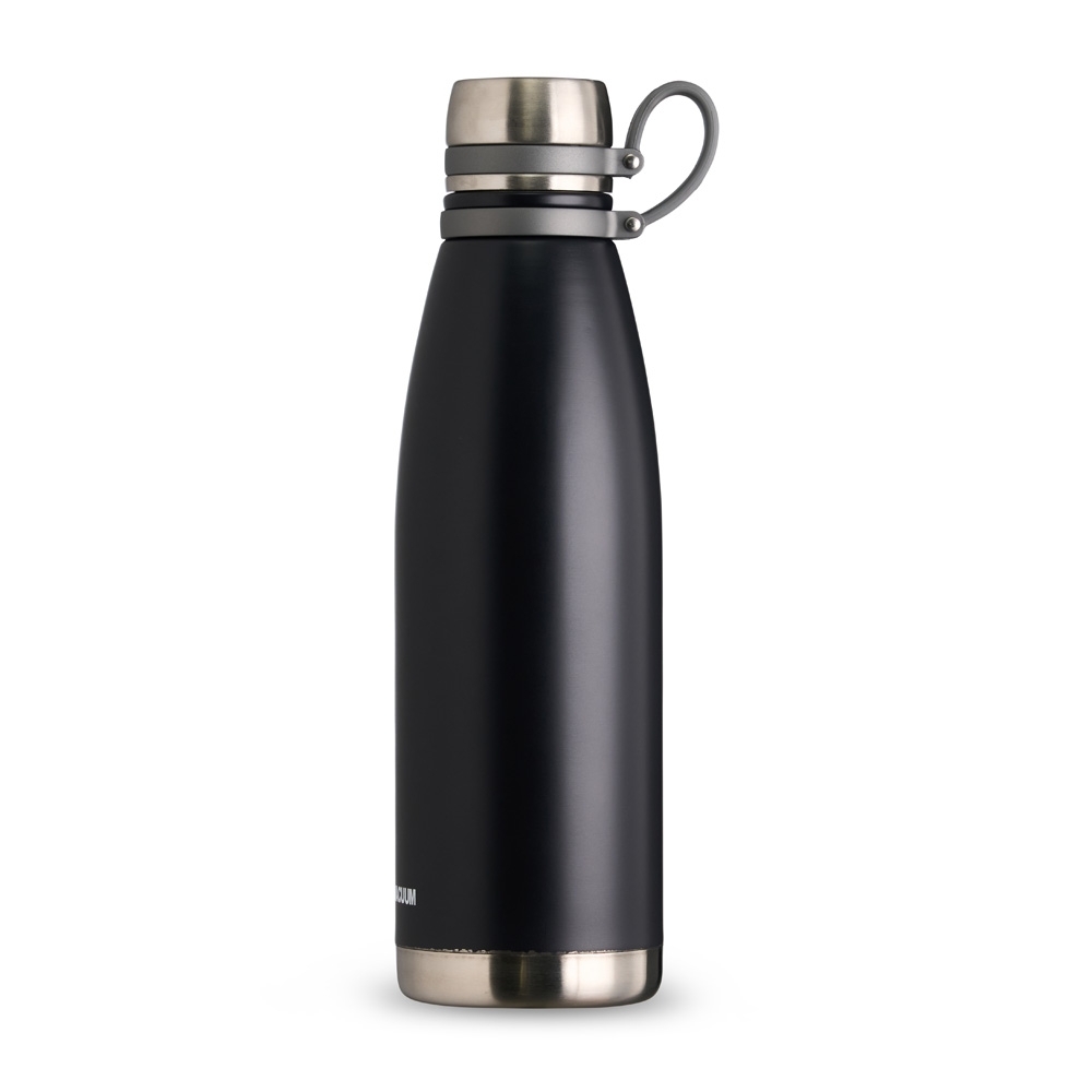Garrafa térmica com infusor de bebidas, feita em inox 316 com capacidade de 1,1 litros e alça de silicone acoplada na tampa.
