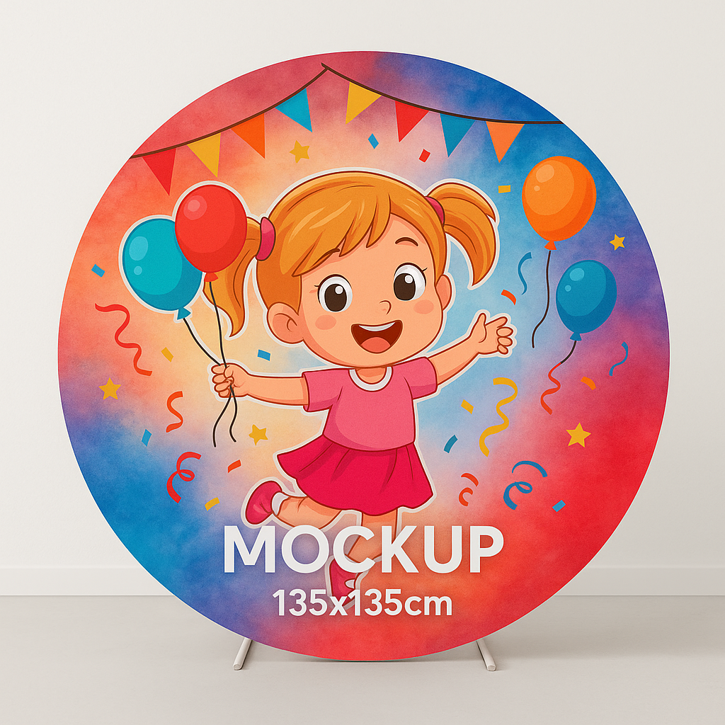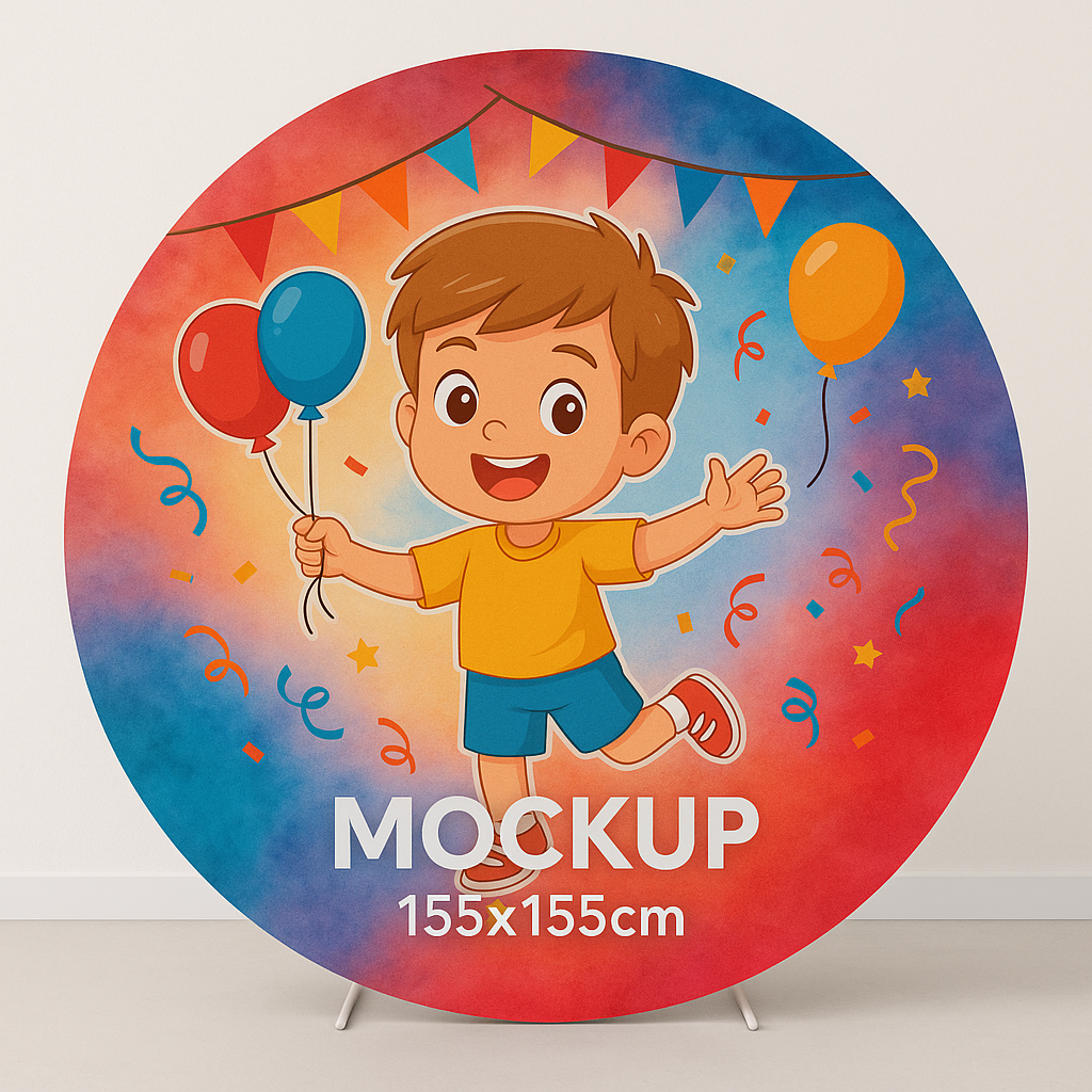 Deixe sua festa ainda mais especial com nossos painéis redondos personalizados! Produzido em tecido helanca de alta qualidade, leve e resistente, o painel já acompanha elástico costurado, garantindo fácil montagem e ótimo caimento na estrutura.
