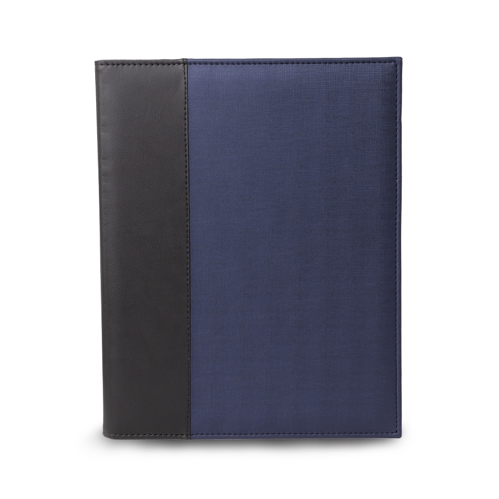 Ir para o conteúdoPasta convenção de couro sintético, possui porta caneta, dois compartimentos, sendo um para arquivar documentos e um bloco com aproximadamente 15 folhas brancas não pautadas.