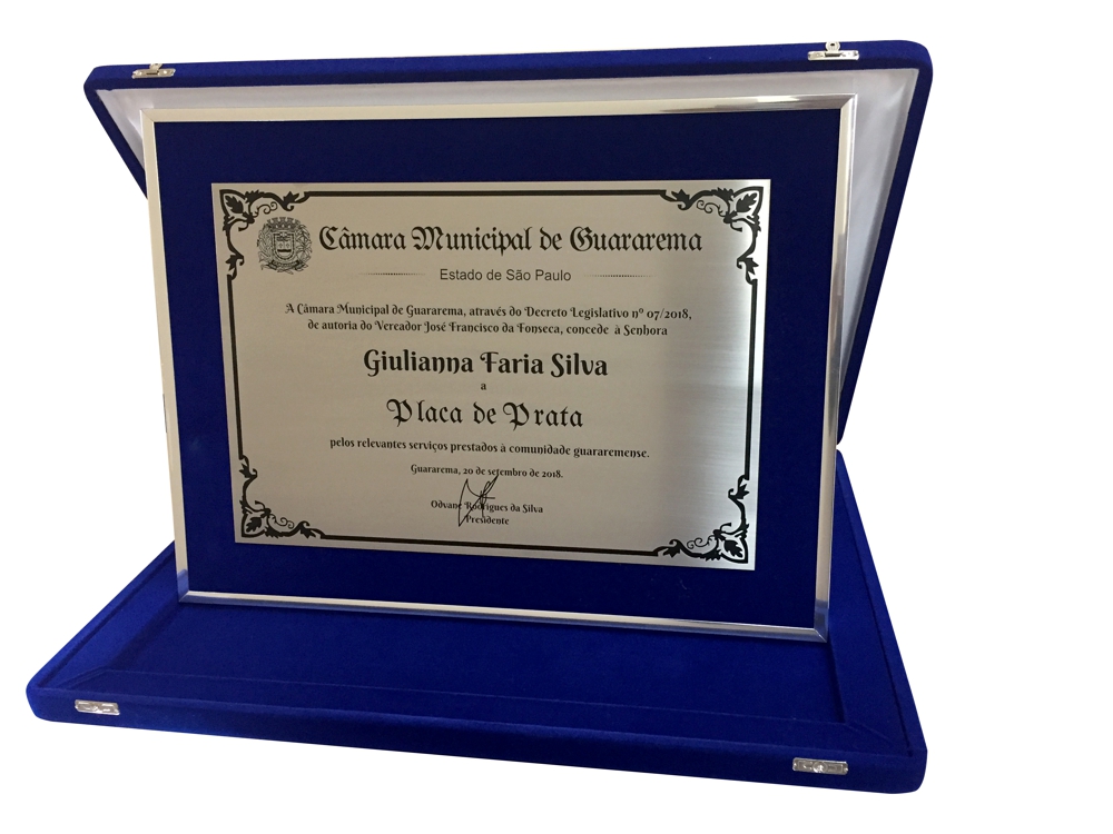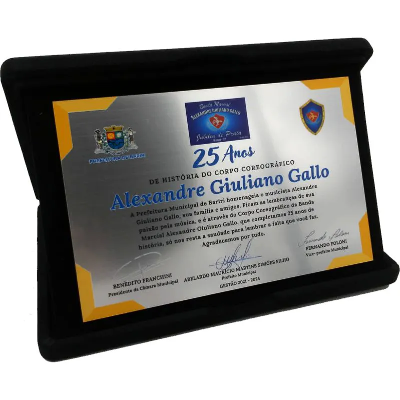 Ideal para: empresas, eventos corporativos, homenagens institucionais, premiações, datas comemorativas e reconhecimentos especiais.